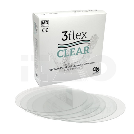 3Flex Clear si adatta alla maggior parte delle termoformatrici in commercio (vacuum/pressure moulding machine) ed è di facile lavorazione e compatibile con resine acriliche e fotopolimerizzanti.