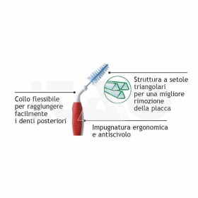Le setole sono coperte da protezione antibatterica alla clorexidina* per garantire l’igiene dello scovolino fra un uso e l’altro.