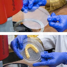 Grazie alla sua proprietà di legarsi a tutti i tipi di acrilici (fotopolimerizzabili e a caldo) e alla capacità di adattarsi con precisione al modello, Taglus® Premium è un materiale che può essere utilizzato anche per la fabbricazione di splint.