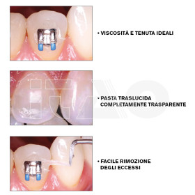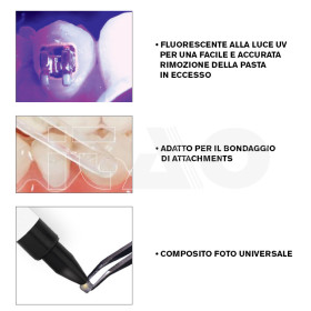 Illuminando la superficie del dente con una lampada UV dopo il bonding (o dopo il debonding), la pasta in eccesso rimasta sul dente può essere facilmente rimossa per garantire la completa pulizia.