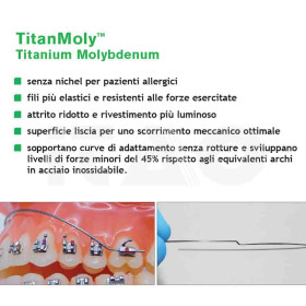 Grazie alla speciale finitura a specchio, gli archi TitanMolyTM danno un effetto estetico luminoso e la finitura superficiale liscia permette una migliore frizione e uno scorrimento meccanico ottimale.