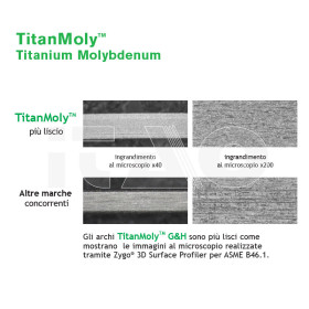 Grazie alla speciale finitura a specchio, gli archi TitanMolyTM danno un effetto estetico luminoso e la finitura superficiale liscia permette una migliore frizione e uno scorrimento meccanico ottimale.