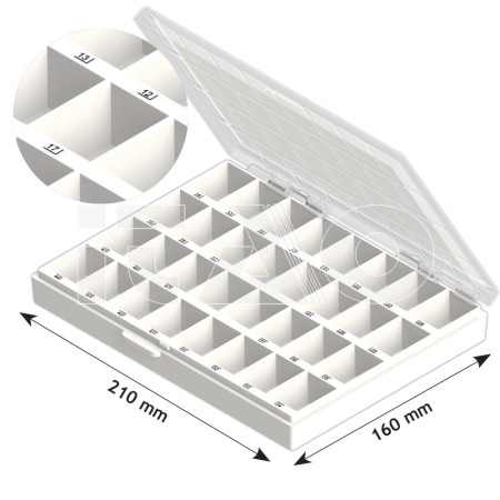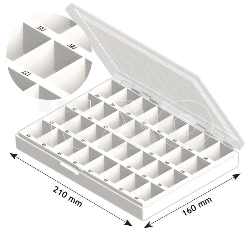 Contenitore per brackets rettangolare in plastica dotato di 32 scomparti.