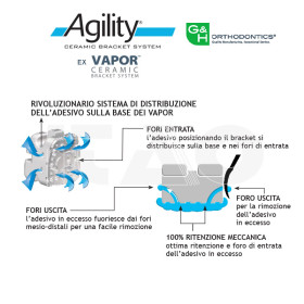 AGILITY Ceramic di G&H® Orthodontics realizzato in ceramica policristallina (Ceramic Injection Molded).