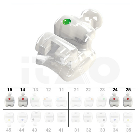 La traslucenza di questi brackets fa sì che assumano lo stesso colore del dente sottostante, rendendoli estremamente estetici.