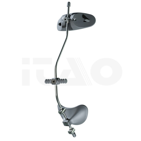 Realizzata in acciaio inossidabile e materiali plastici resistenti alle rotture. Completamente regolabile, può essere facilmente adattata al viso del paziente. Appoggio frontale basculante e mentoniera fissa o articolata. Rivestimento mentoniera e frontale in materiale morbido per il massimo comfort del paziente. La maschera può essere utilizzata con mentoniera in posizione fissa o articolata.